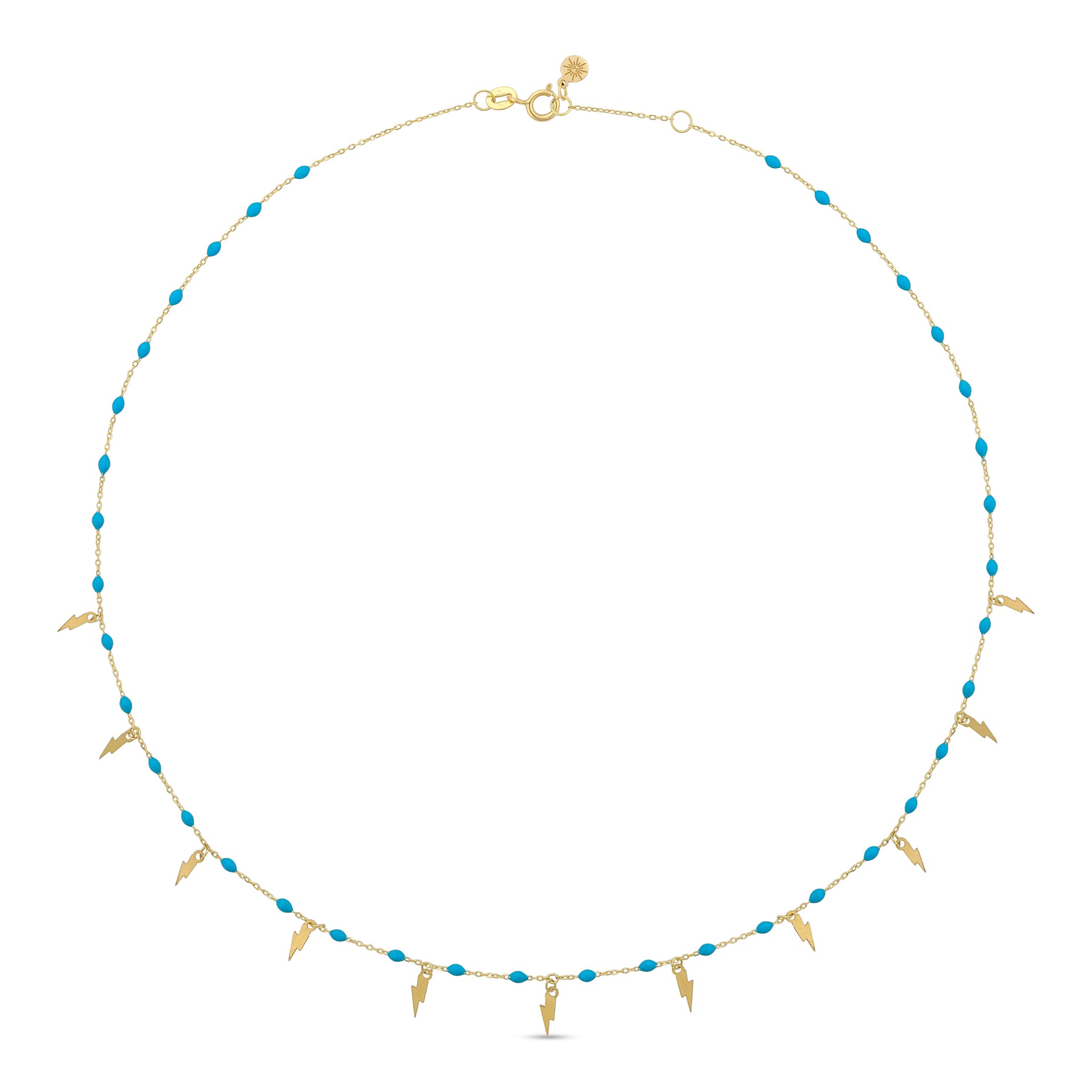 Summer Joy Necklace, a burst of colors on a delicate 18kt gold chain. This necklace is perfect for those who want to add a pop of color to their outfit while making a statement.