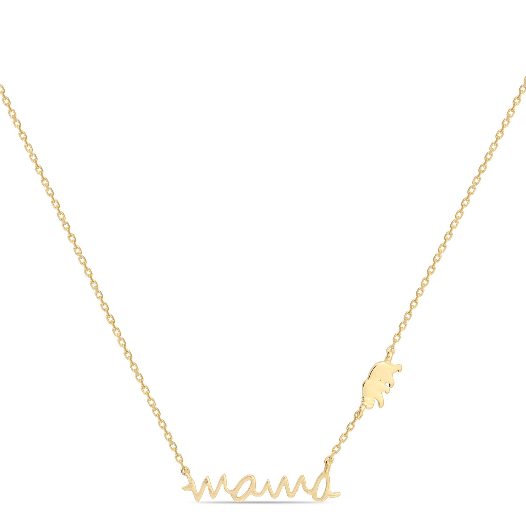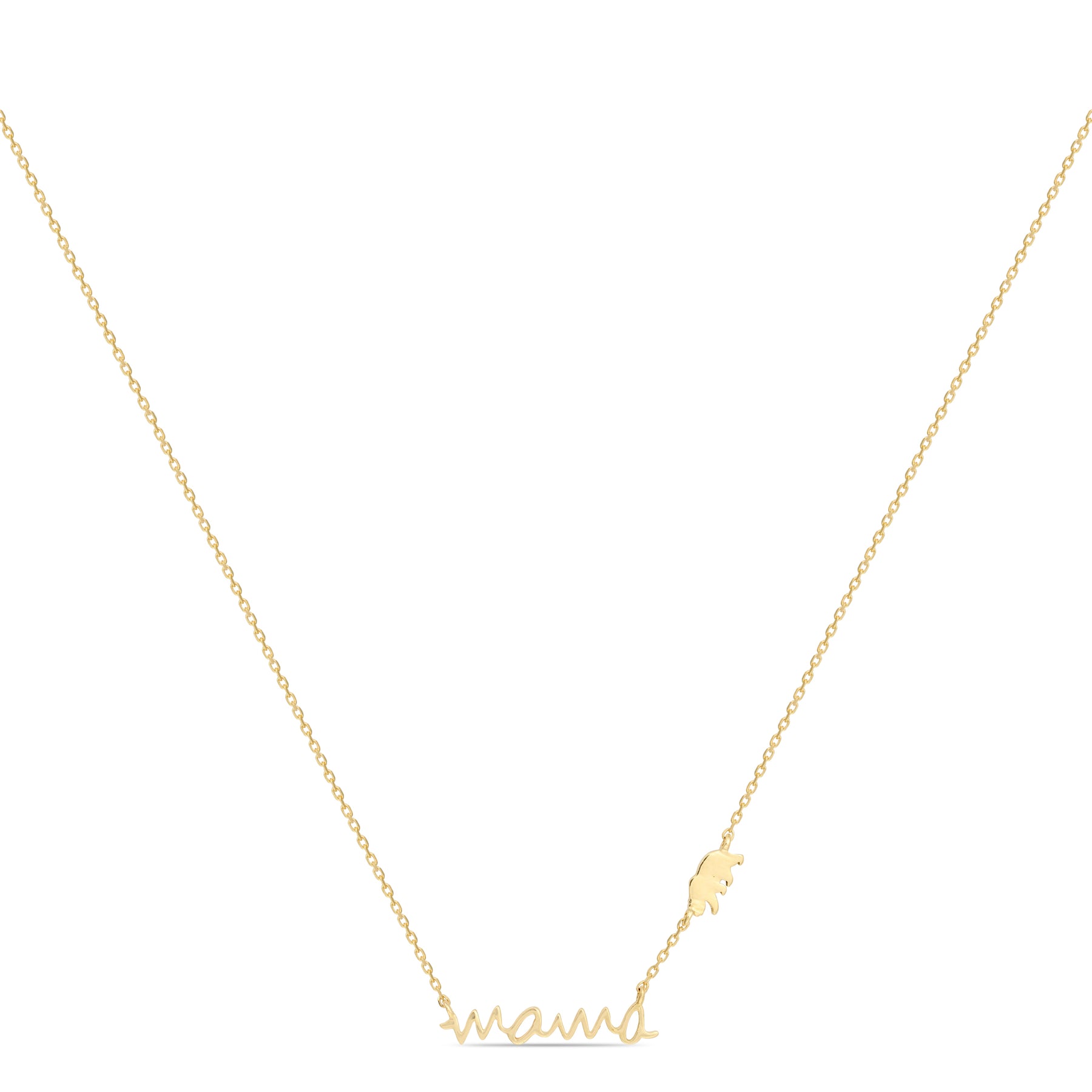 The Mama Bear Necklace, crafted in 18kt gold, symbolizes the fierce, protective love of motherhood. Featuring a dainty bear charm next to the word “Mama,” this necklace is a perfect piece of mother's jewelry, representing strength and devotion. Ideal for everyday wear, it makes a heartfelt gift for any mom. Meticulously designed for quality, this delicate piece is a constant reminder of the bond between mother and child. Wear it close to your heart and embrace the love and protection of a mama bear.