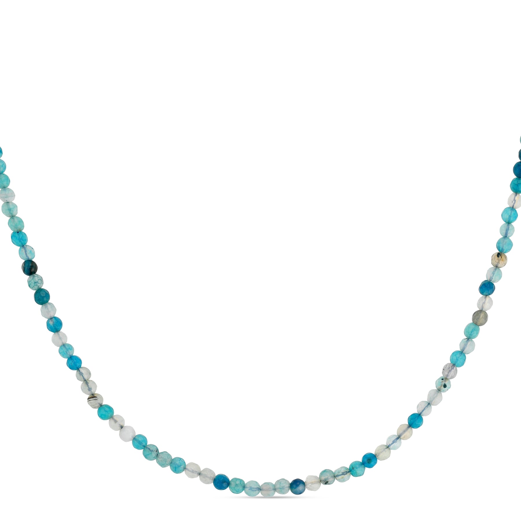 The Multi-Shade Blue Gemstones Necklace is a delicate beaded piece inspired by the shifting shades of the sea. Crafted with faceted round beads in soft tones of turquoise blue, deep teal, cloudy white, and natural stone variations, each necklace carries its own subtle, organic color story.