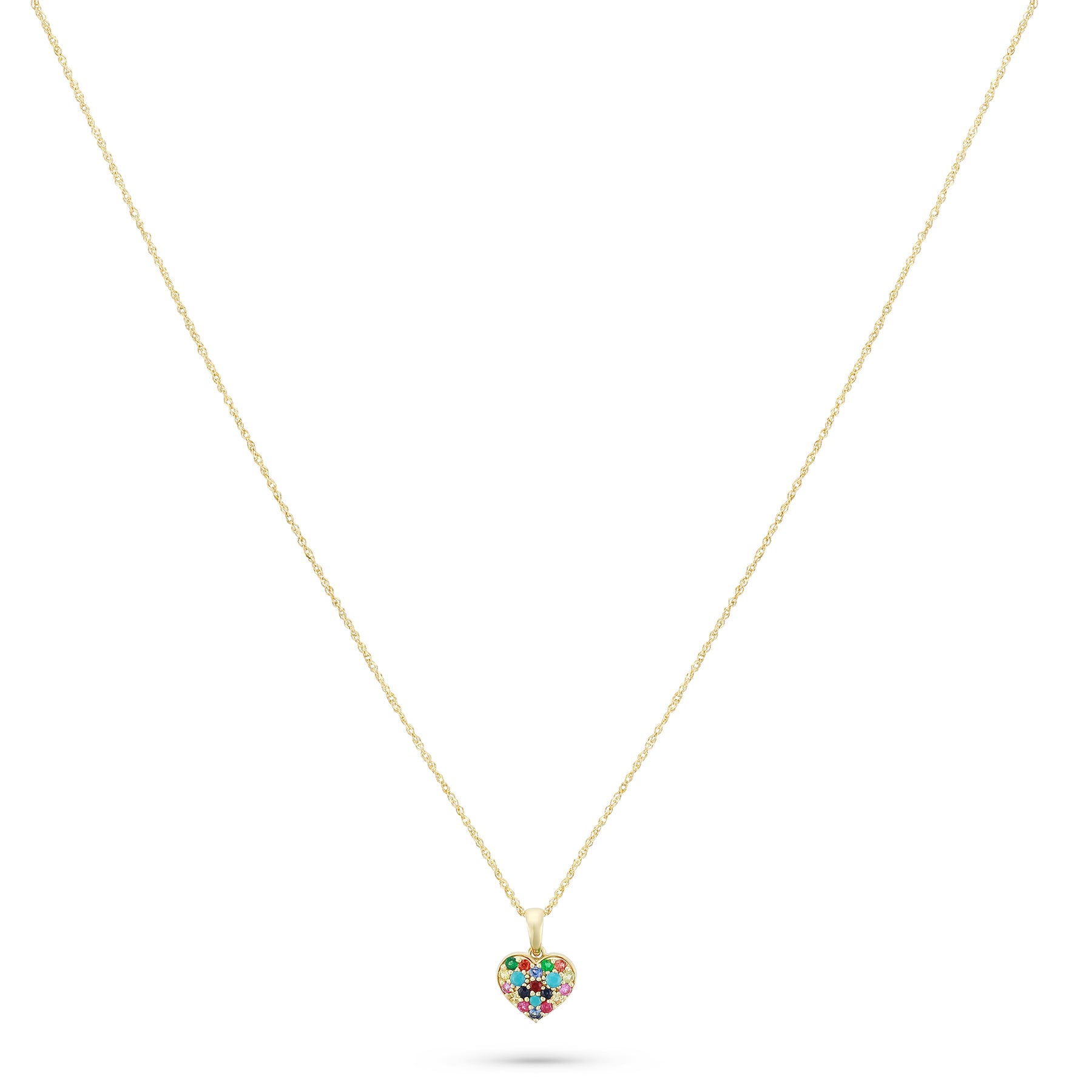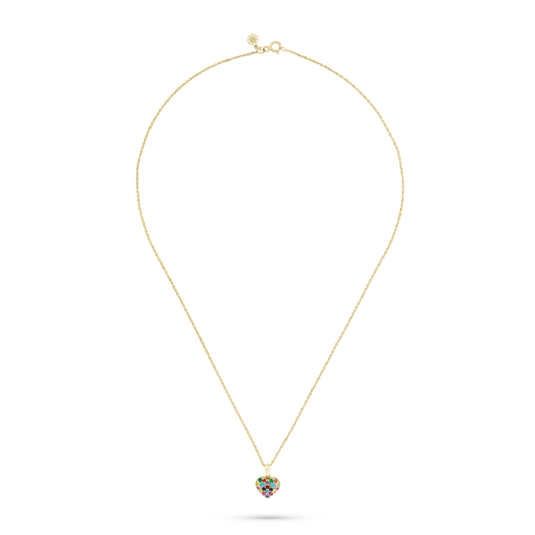A joyful yet refined expression of color and sentiment, the Rainbow Heart Necklace is crafted to celebrate love in all its shades. Featuring a delicately pavé-set heart charm suspended from an elegant gold chain, this piece brings together vibrant gemstones in a harmonious, timeless design. Designed to sit close to the heart, it’s a meaningful everyday necklace with a playful, elevated touch.