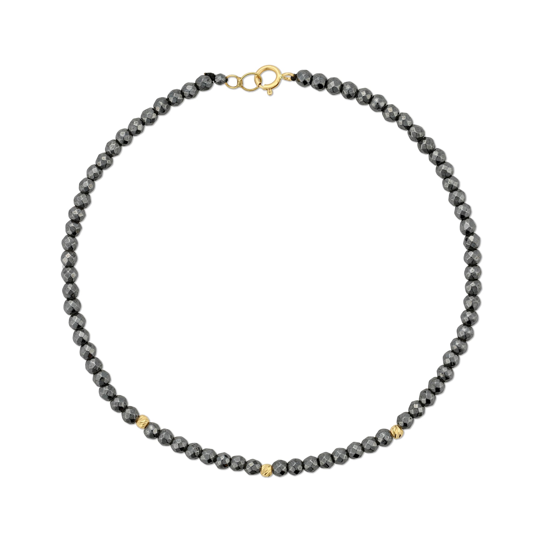 The Hematite Gold Anklet is crafted in solid 18k gold and features a continuous strand of faceted semi-precious stones accented with subtle gold details. Finished with a refined gold clasp, this anklet offers a clean, modern look with just the right amount of contrast and shine. Elegant and understated, it is designed to be worn effortlessly from day to night.